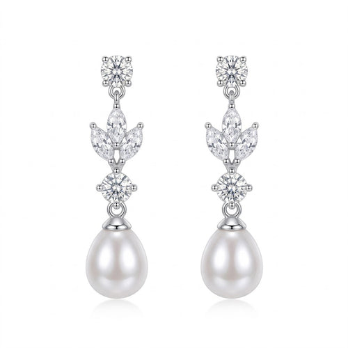 Sophisticated and radiant, these silver crystal pearl drop earrings are designed to bring timeless elegance and graceful sparkle to any jewelry collection.